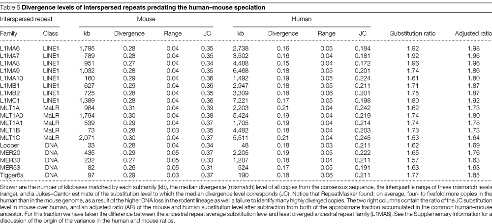 genomes. Mouse has a higher mean (G+C) content than human (42%