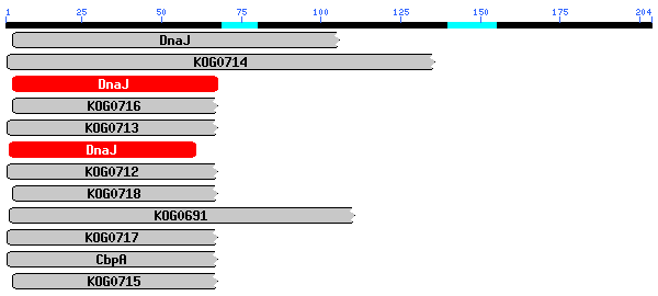 Amb l'estudi de dominis obtenim dominis conservats de DNA-J chaperone i els resultats obtinguts amb el BLASTP alineen el gen amb una proteïna DnaJ homolog subfamily B member 6, amb un score de 8e-56, validant els resultats anteriors.