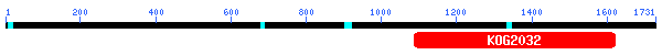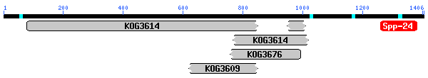 Els resultats mostren que la proteïna conté a la seva regió N-terminal (primers 1000 aa) fragments d'un domini Ca2+/Mg2+-permeable cation channels, amb un e-value de 0.0. I en la porció C-terminal un domini conservat en Secreted phosphoprotein 24 amb un e-value de 4e-31. El BLASTP mostra alta homologia amb una Long transient receptor potencial channel 2/7 (e-value e-165) en els primers 1000 aa, i amb un e-value de 6e-40 en la regió C-terminal trobem homologia amb la Secreted phosphoprotein 24, coincidint amb els resultats anteriors, el que ens fa pensar que efectivament la regió contenia dues proteïnes en lloc d'una, en l'extrem C-terminal una Secreted phosphoprotein 24 i en el N-terminal una Long transient receptor potencial channel 2/7.